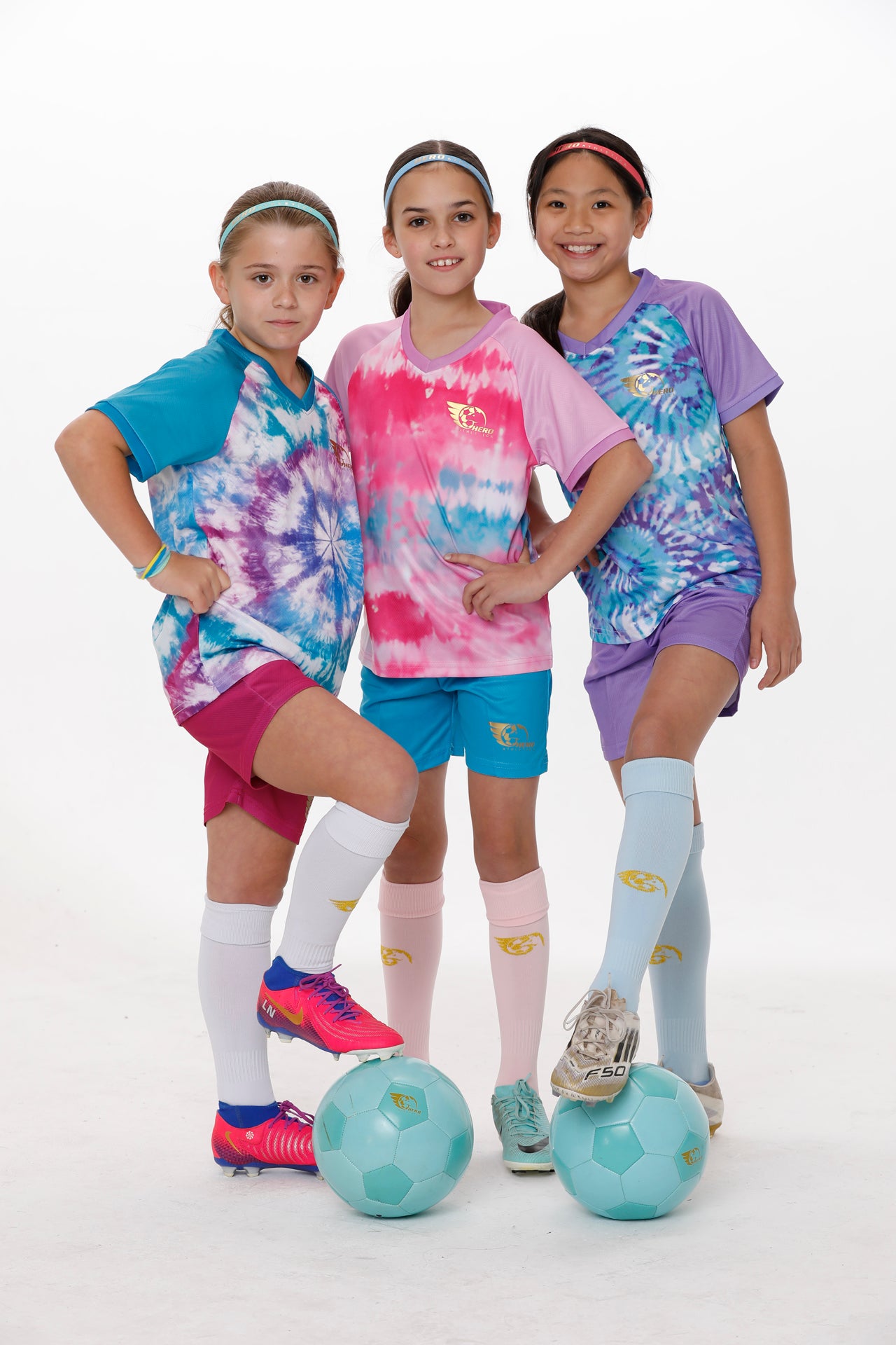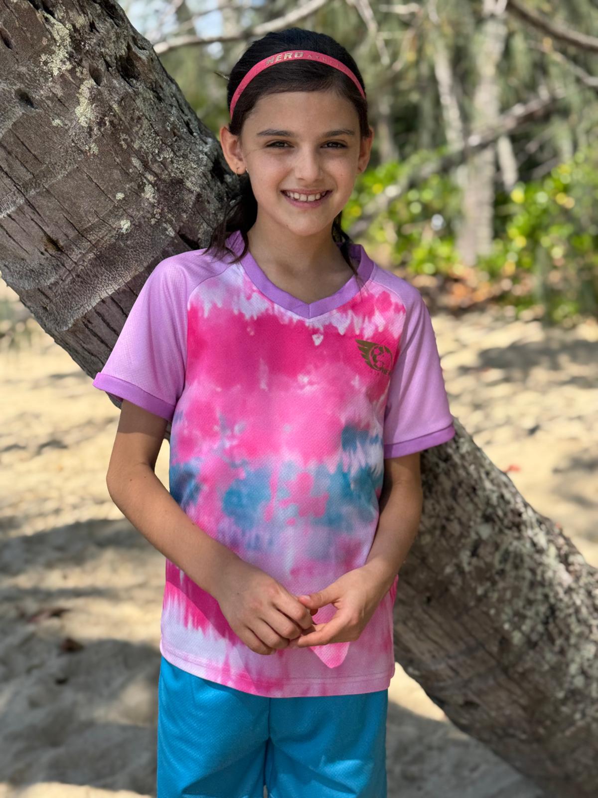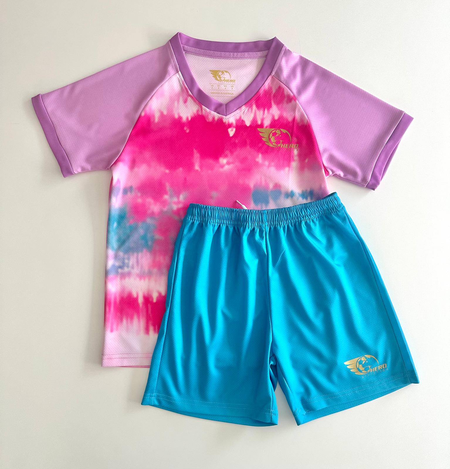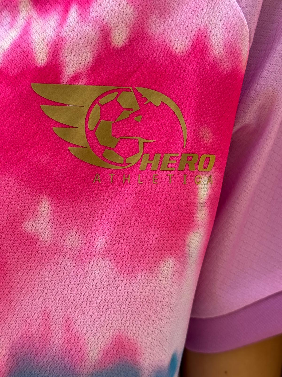 Made with 100% polyester fabric, the Aurora Football Kit features a V-neck for added comfort while being active. The tie dye design paired with Hero Athletica’s gold logo, makes the Aurora Football Kit a must-have for fashion loving girls!