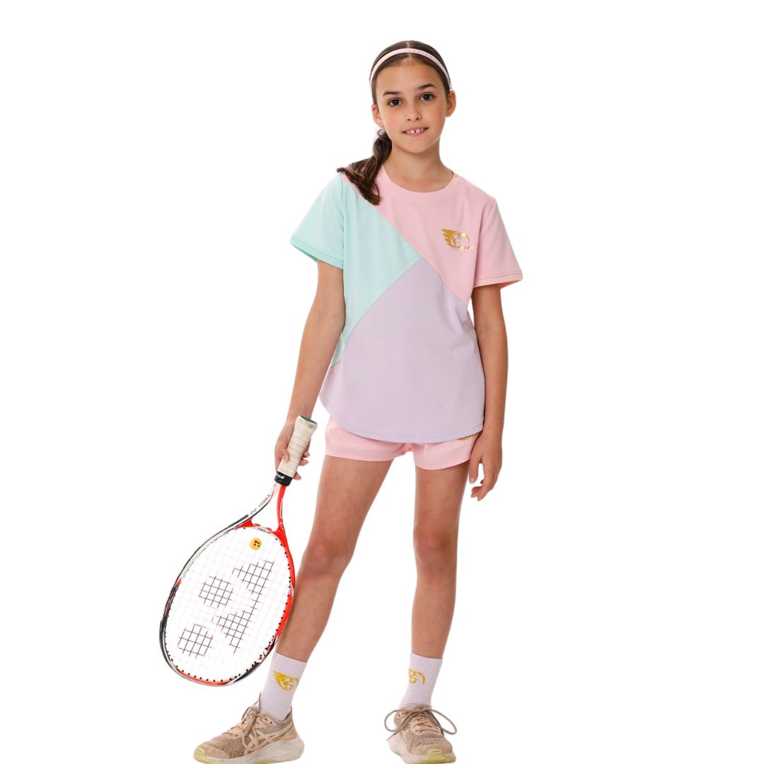 Introducing the Dani Sports Shirt, the ultimate soccer training top designed for style, fun, and comfort. With its unique diagonal pattern, this sports shirt combines playful pink, refreshing green, and charming purple, making it perfect for energetic girls on and off the field. Created by girls for girls, this shirt ensures you’ll always stand out in a crowd.