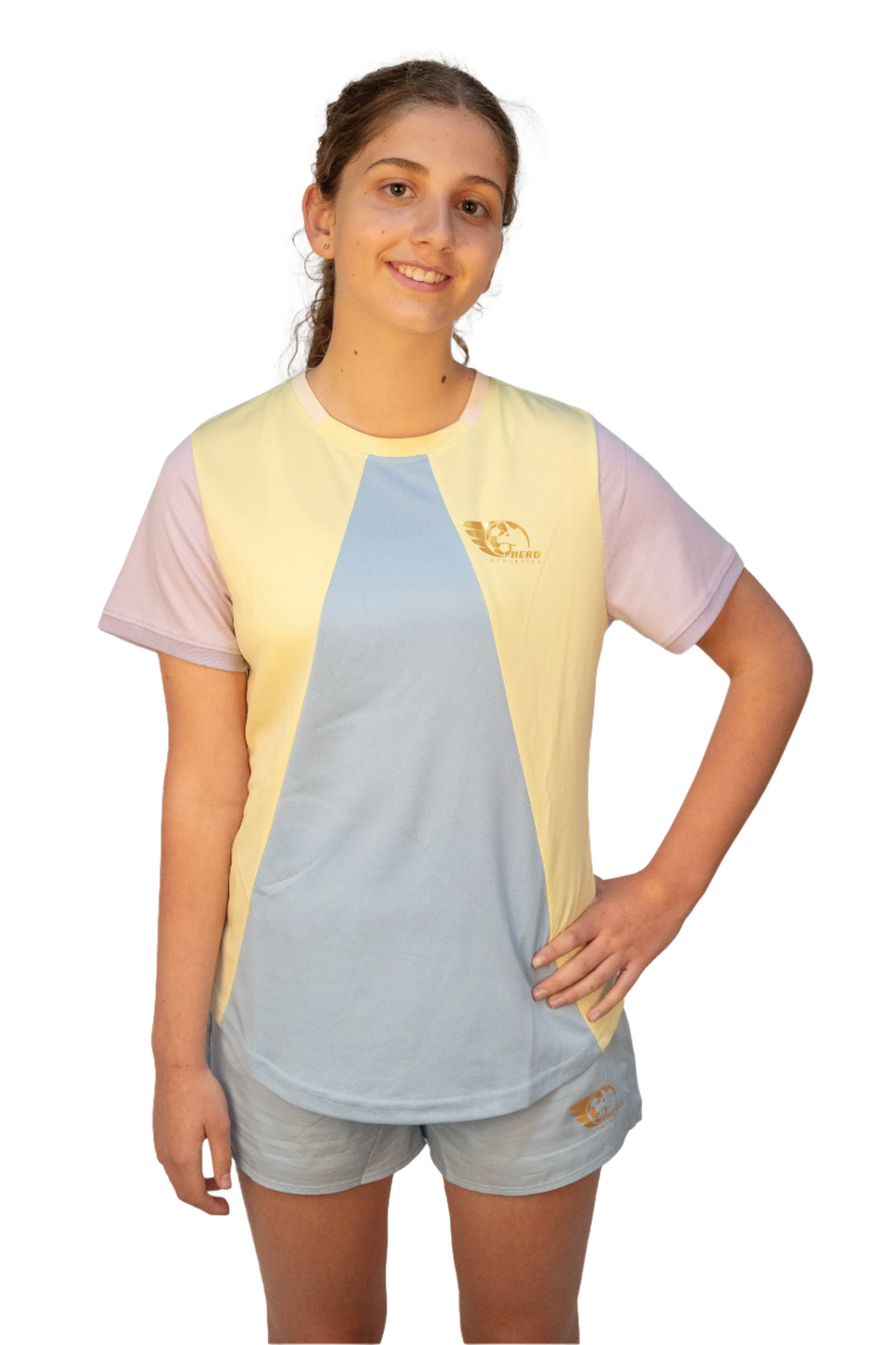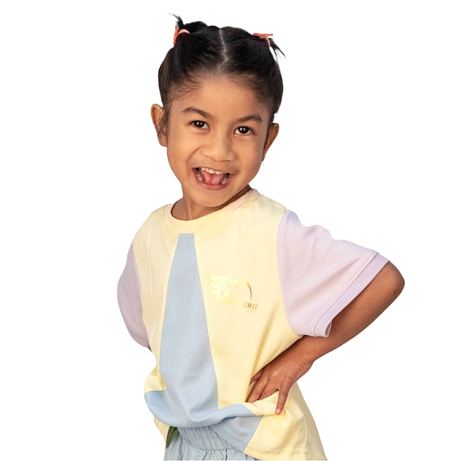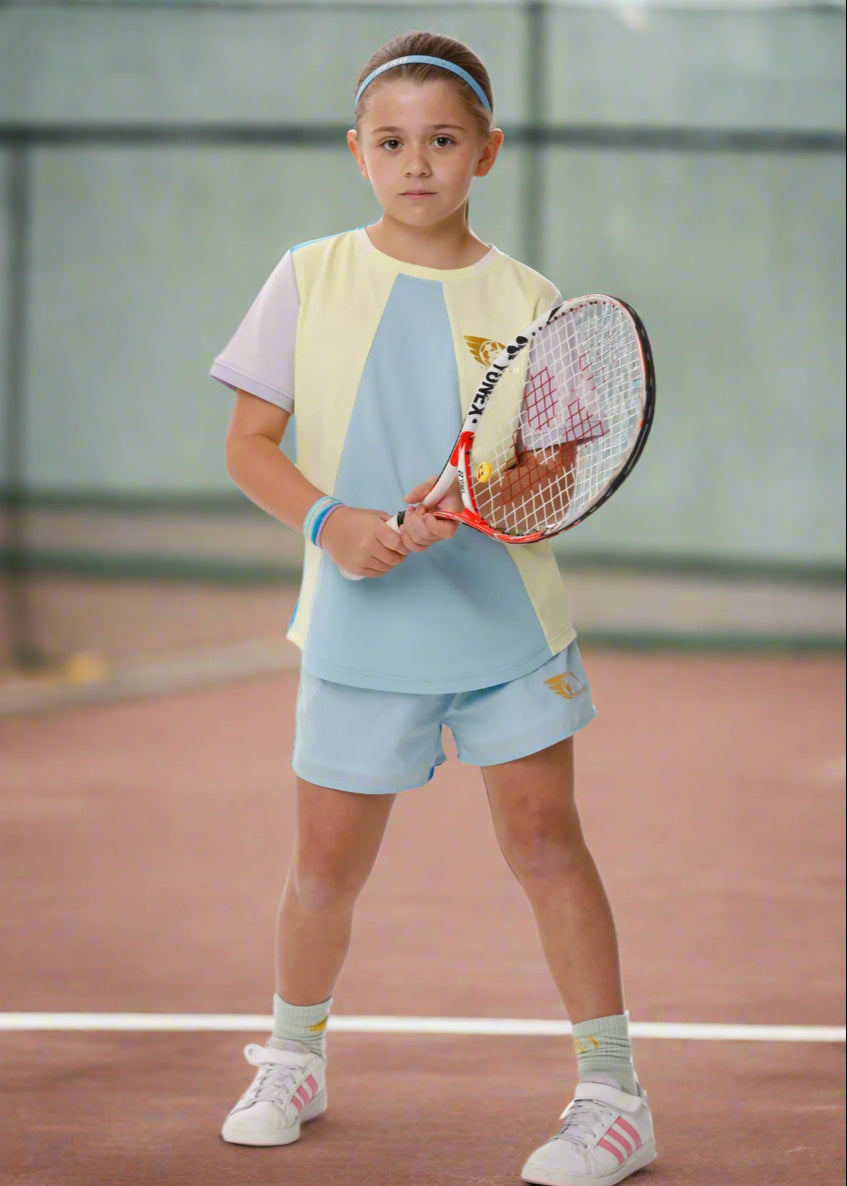 Show off your vibrant personality with our Lucia Sports Shirt, a true fashion standout! With its funky pastel purple, blue, and yellow colours, plus a distinctive design that’s sure to turn heads, this sports shirt is made for girls who love to shine.