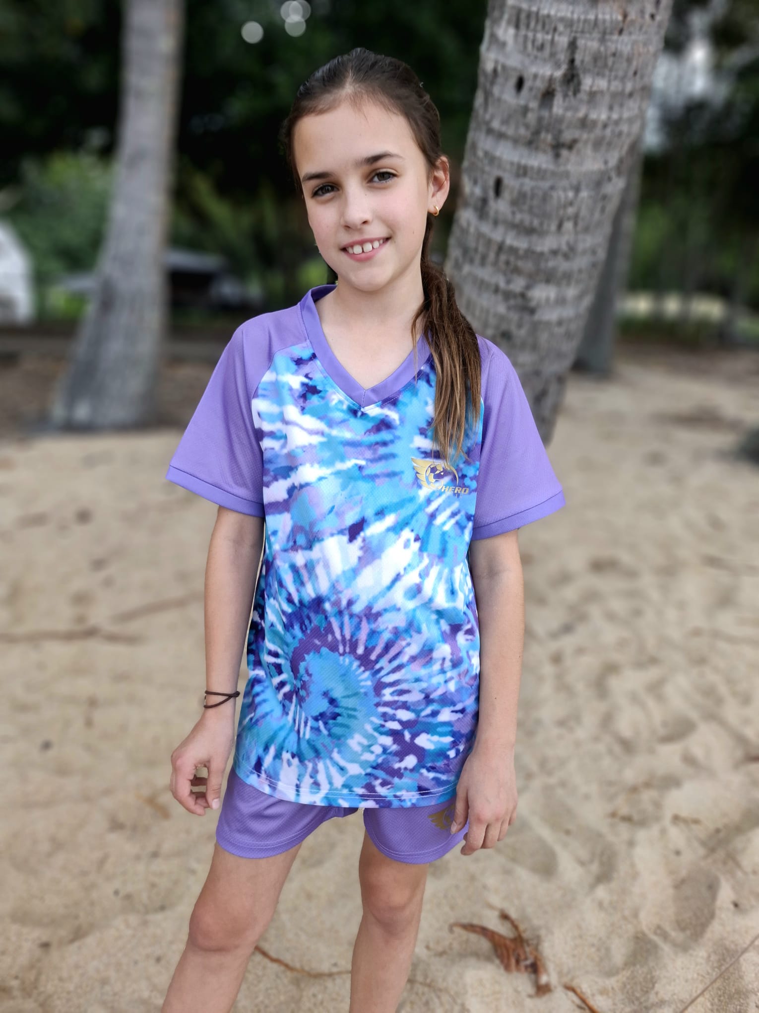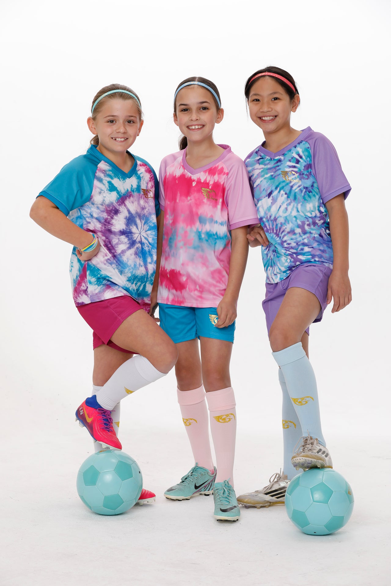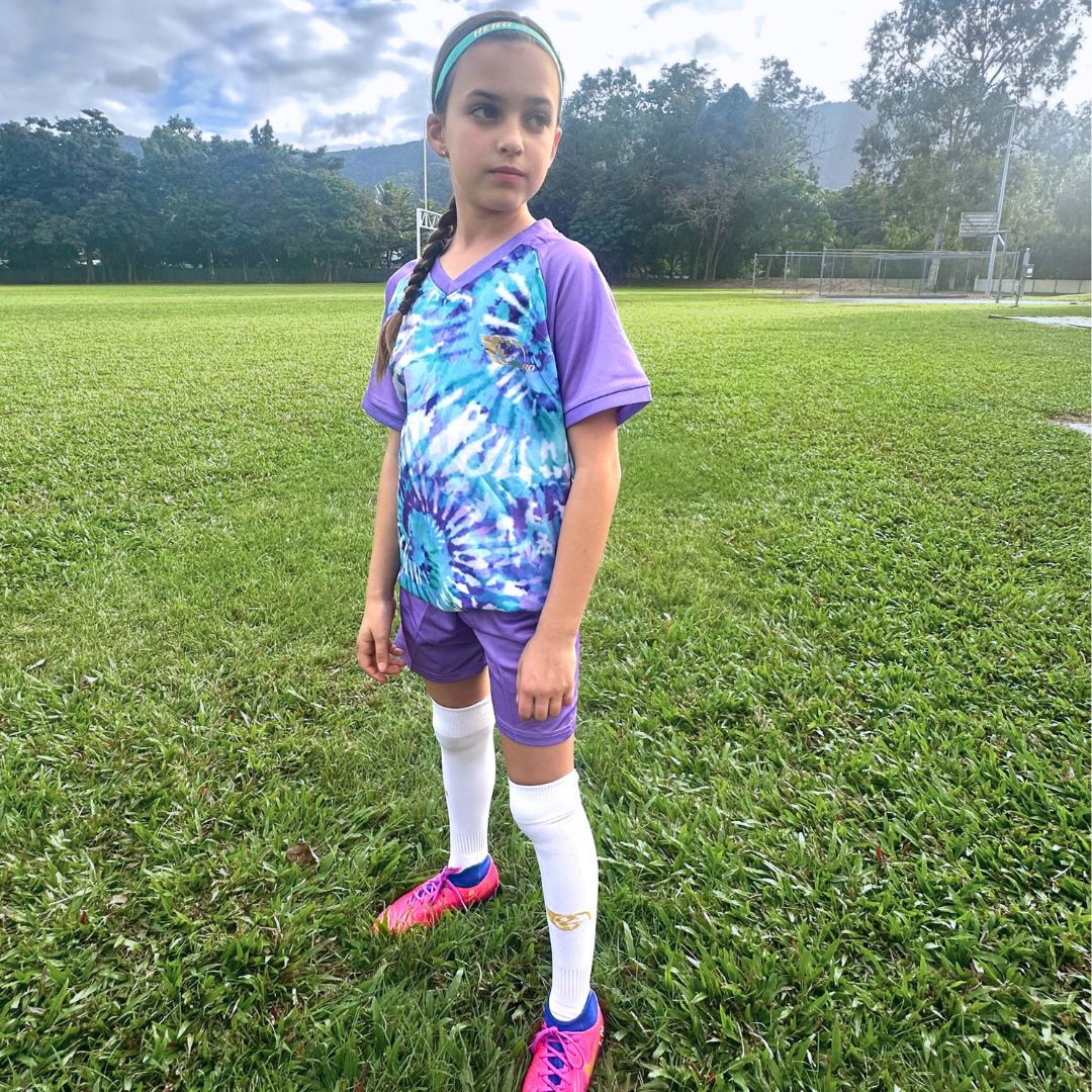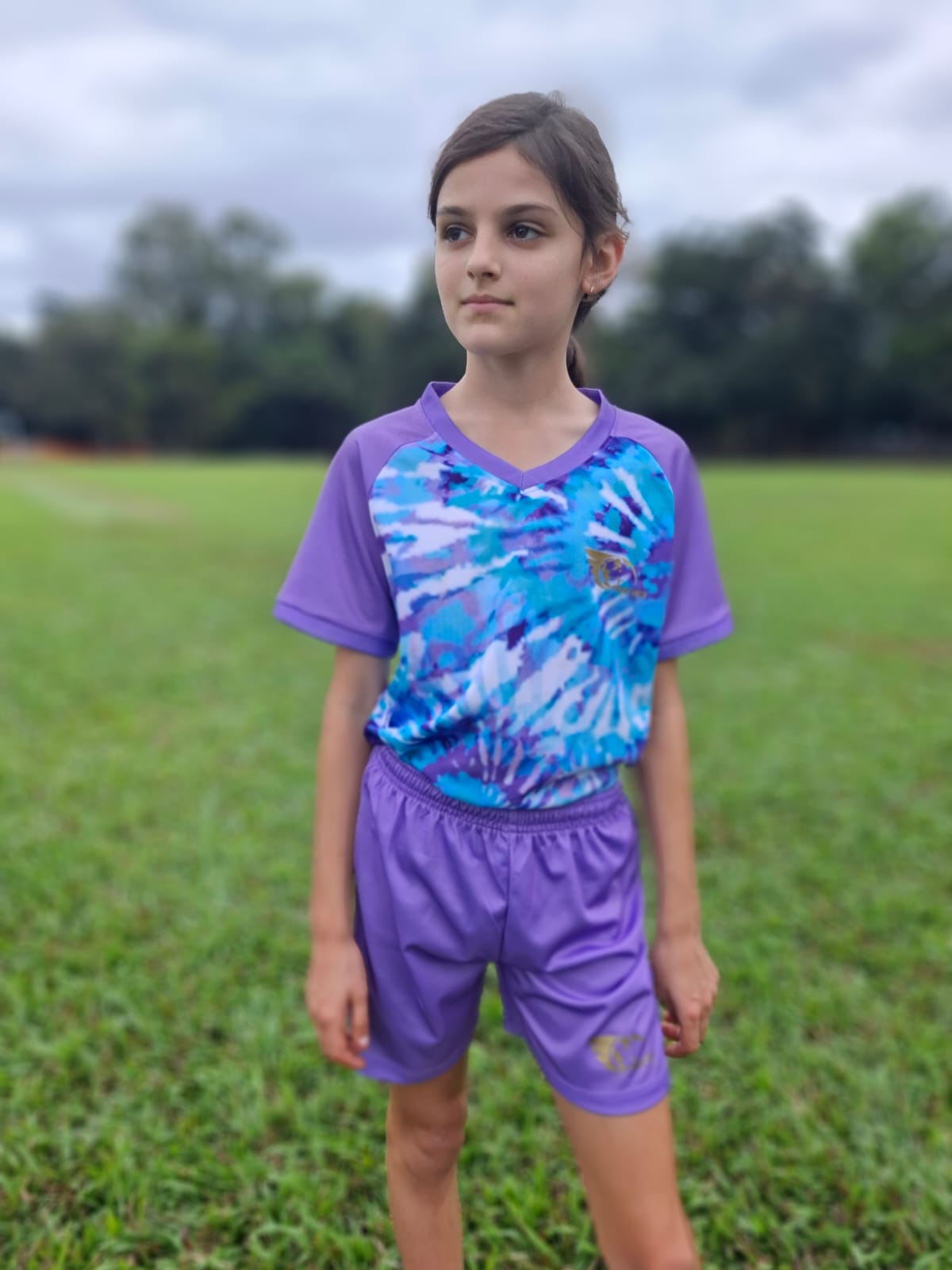 Soft and dreamy purples, blues and moonbeam whites swirl together in a tie dye design, the Luna Football Kit is made for girls who move to their own rhythm. Calm, cool, and a little bit cosmic.